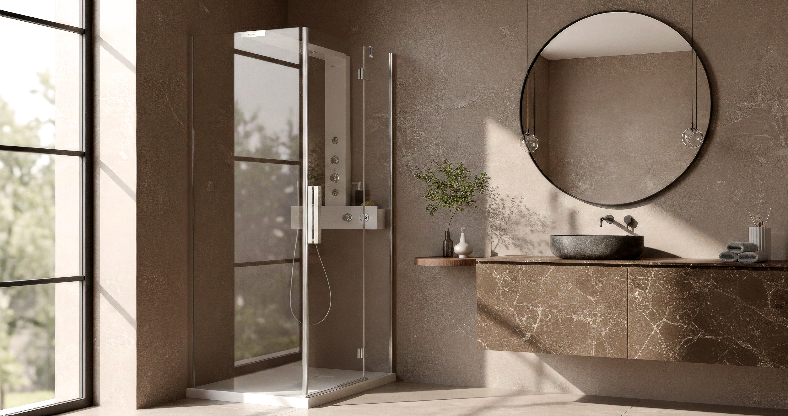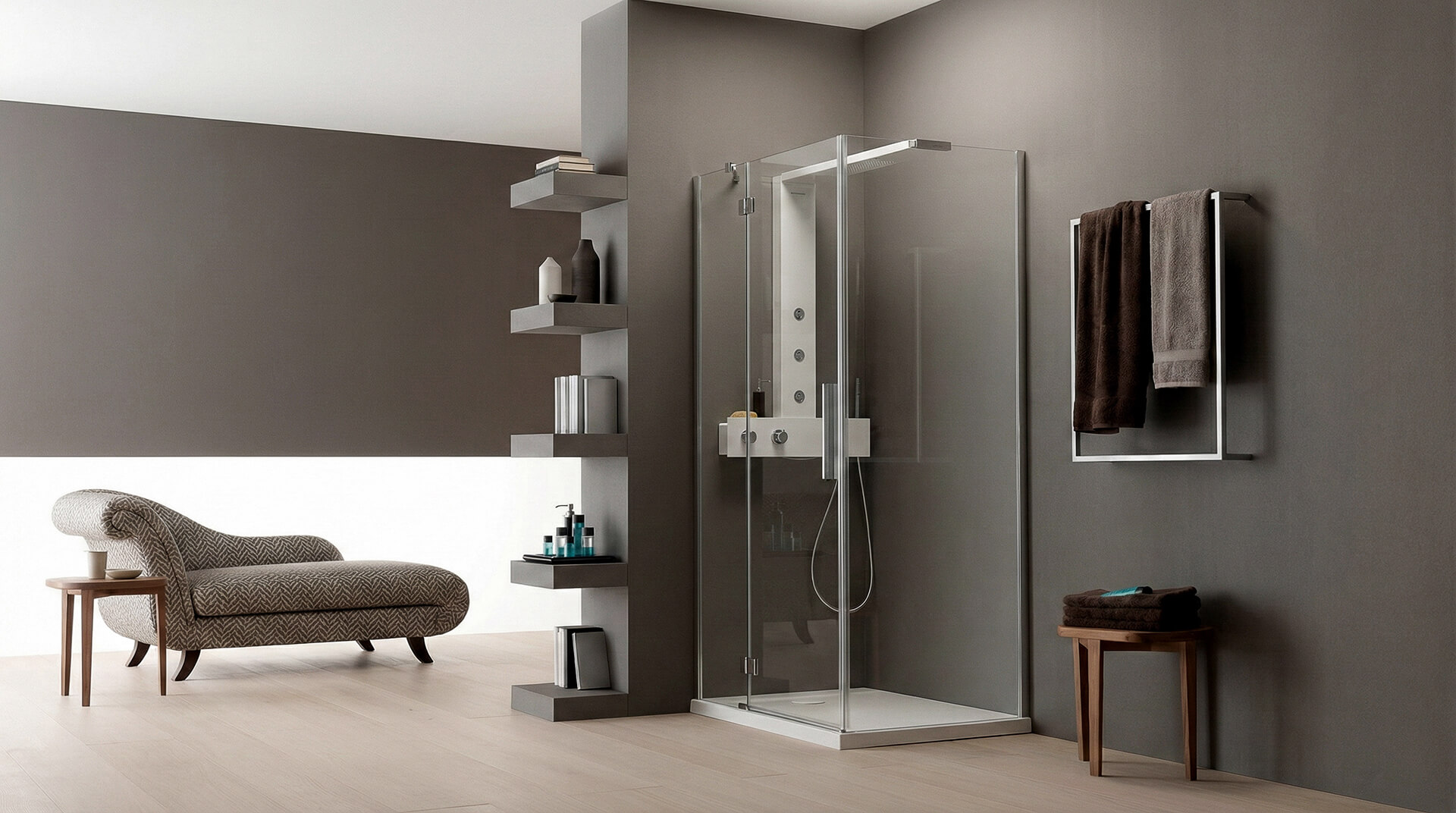 Extend nasce nel 2012 per Albatros System con un’idea semplice: restituire dignità ai gesti ripetuti, rendendo la doccia un piccolo rito domestico di benessere. Il progetto si costruisce attorno a una soglia orizzontale che attraversa il box: integra gli apparati idraulici e, nello stesso gesto, diventa piano d’appoggio e contenitore per la cura del corpo. La scelta del Corian definisce un carattere compatto e continuo, preciso nei dettagli e affidabile nell’uso. La tecnologia resta al servizio della persona: getti nebulizzanti, velo d’acqua centrale e soffione superiore compongono un’esperienza calibrata, senza protagonismi. Ne risulta un oggetto d’arredo che struttura lo spazio con sobrietà e lo rende più chiaro, più comodo, più quotidiano.