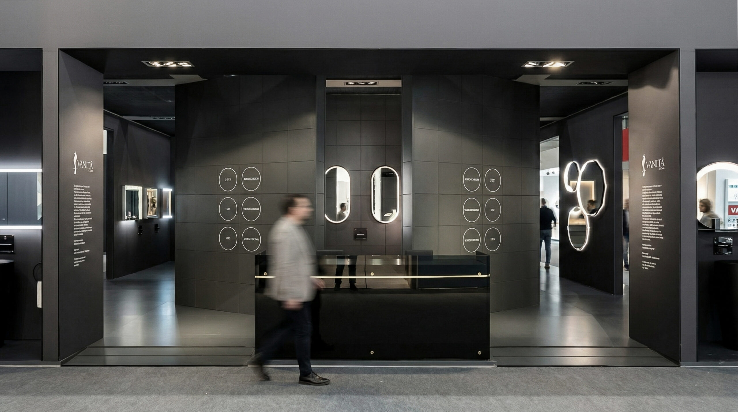Booth ISH – Vanità & Casa nasce nel 2025 come progetto di art direction per raccontare un marchio che lavora sul rapporto fra design, innovazione e presenza materica. L’obiettivo non era semplicemente esporre una collezione, ma costruire un luogo coerente, riconoscibile e capace di trasformare le tecnologie del brand in un’esperienza comprensibile.